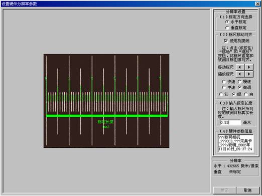 該方法的基本原理是:在已知實際長度的測微尺圖像上,移動電子標尺,軟件在該標尺移動的過程中,自動得出覆蓋部分的像素個數,由此求出在該硬件環境下,計算機顯示器上每個像素所代表的實際長度。