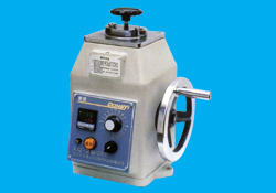 本機系機械式鑲嵌機,旋轉機體外手輪,通過一對傘齒輪帶動機體內絲桿使壓制試樣的下模在剛模套內上下移動,熱因性塑料連同鑲嵌的試樣的試樣在加熱的條件下成形。試樣制備過程中的成形壓力由固定在集體內的彈簧自動補償、試樣壓制的壓力可由信號燈給以指示。