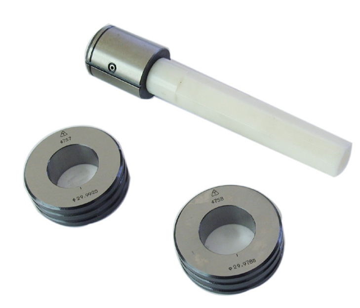 測量頭的標(biāo)準(zhǔn)件是上、下限校對規(guī)(環(huán)規(guī))各一個(gè),用來校正量儀的倍率。測量時(shí),將測量頭插入被測孔內(nèi),量儀指示的數(shù)值為被測孔內(nèi)徑的誤差值。如果將測量頭沿被測孔作軸向移動,量儀指示的差值為孔在移動范圍內(nèi)的錐度。如果測量頭在被測孔內(nèi)作相對轉(zhuǎn)動,則可測得被測孔的橢圓度。
